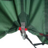 При неравномерном натяжении тента палатки на молнии пологов входов ложится повышенная нагрузка. В результате могут сломаться замок и молния. Металлический крючок и петелька в конце молнии принимают на себя нагрузкуи эффективно разгружают молнию.